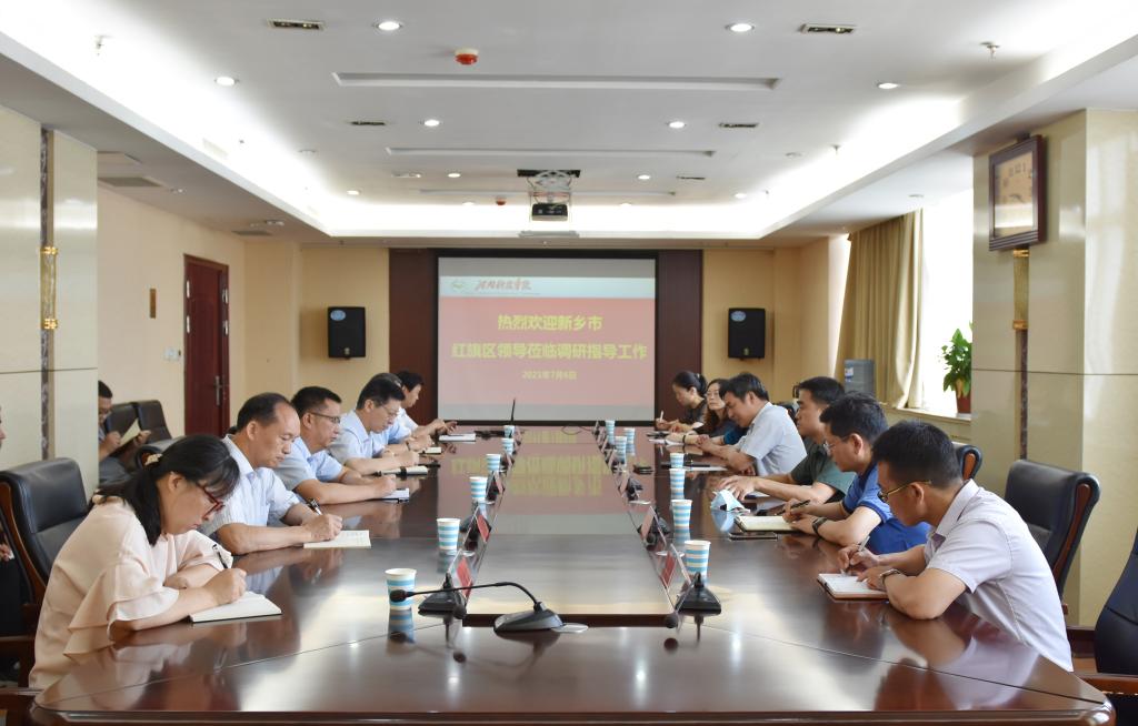 7月6日上午,新乡市红旗区人民政府区长刘宏锋一行7人莅校考察交流。我校在行政楼901会议室举行座谈会,校党委书记周志远、副校长贾积身出席座谈会,党委办公室、校长办公室、科技处等部门负责人参加会议。