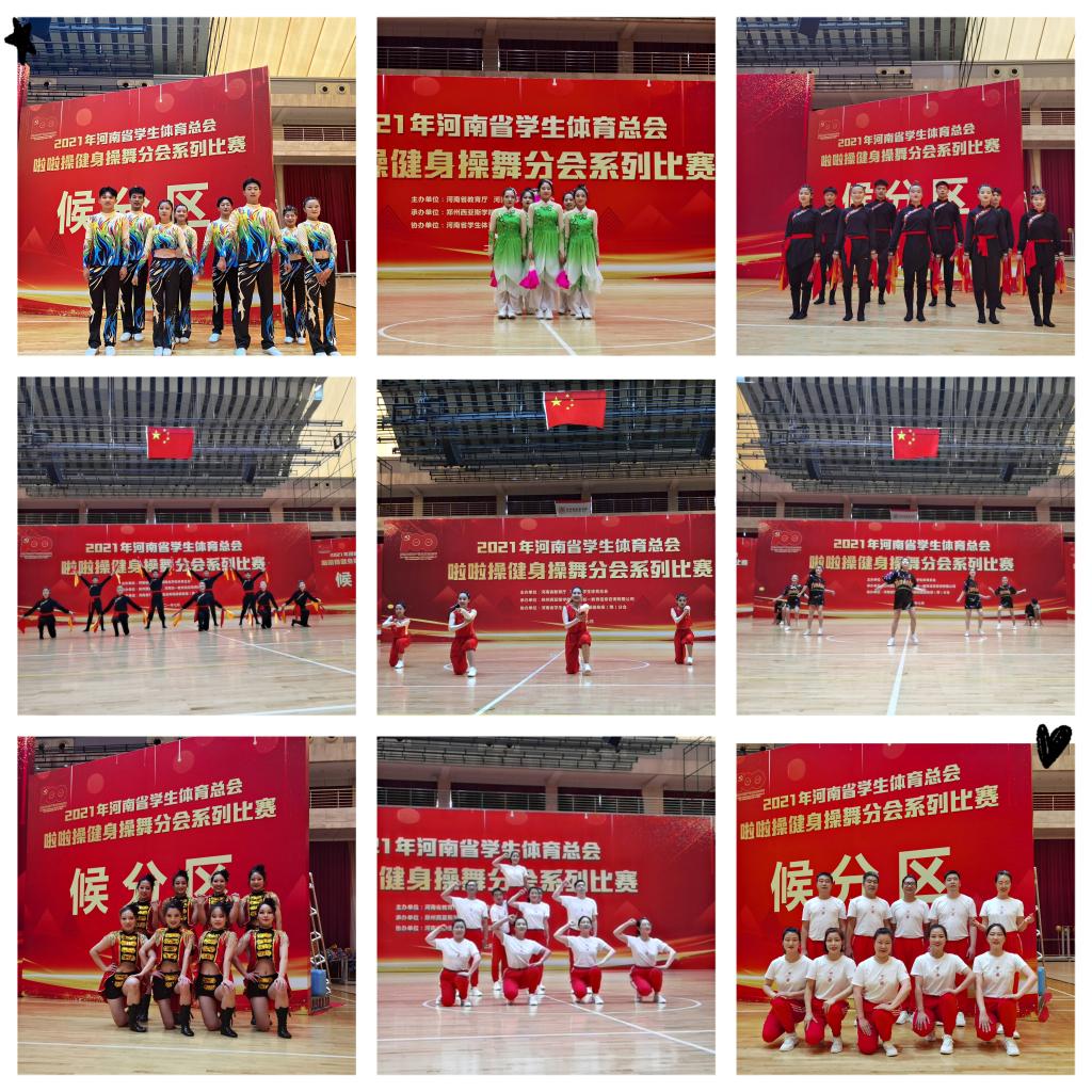 7月12日-7月16日,2021年河南省学生体育总会啦啦操健身操舞分会系列比赛在郑州西亚斯学院举行。我校教职工代表队获特等奖,学生代表队分获一等奖2项,二等奖4项,学校荣获“体育道德风尚奖”。