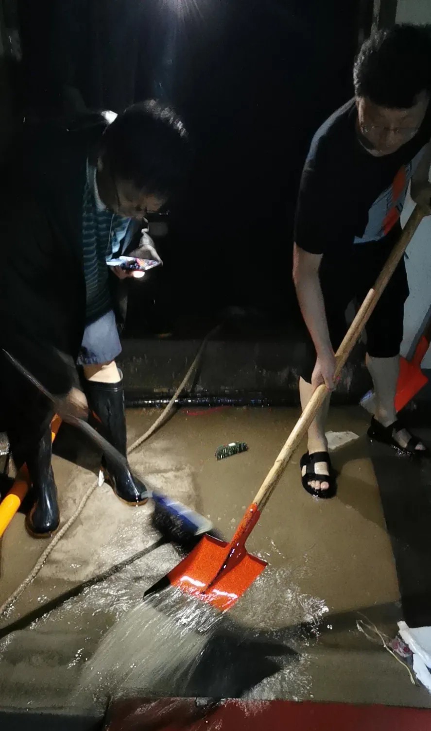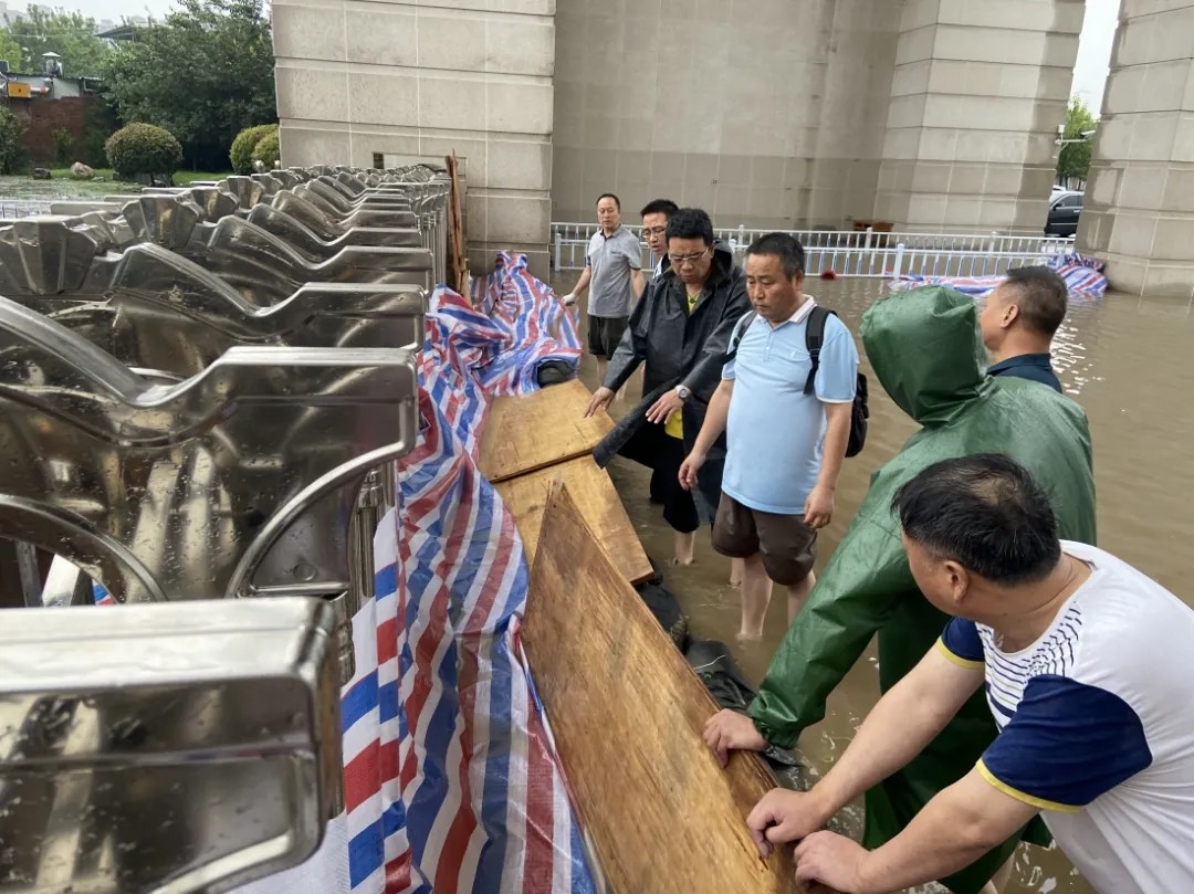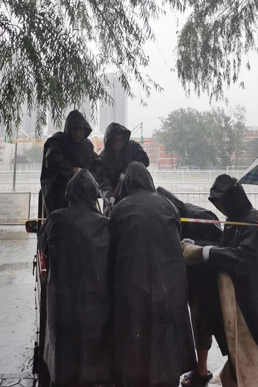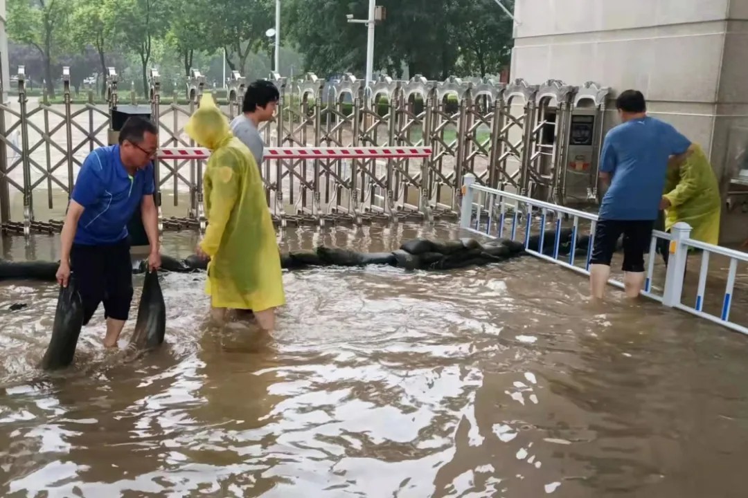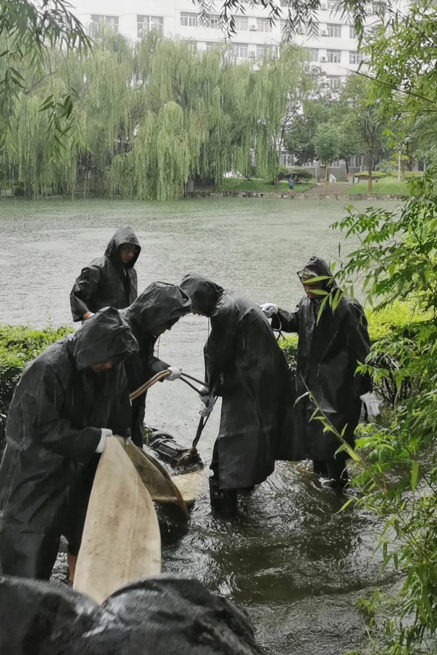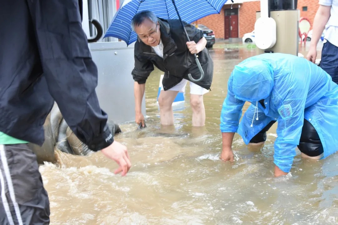 坚守岗位,保卫校园。想尽一切办法,采取一切可行措施,确保师生安全。紧急调集沙袋防止积水倒灌;检查办公楼及学生宿舍楼;排查校内雨水、污水管道情况,发现积水及时清除;及时排除配电室积水;做好安全隐患排查,避免由于井盖冲毁、树木倾倒等情况造成的次生灾害。学校各有关部门,校门防汛组、排涝防汛组、电控防汛组、餐饮防汛组、楼栋防汛组,各家属楼楼长各司其职,相互配合,全力抢险,坚守一线,极力保障师生安全,减少极端天气对校园造成的损失。
