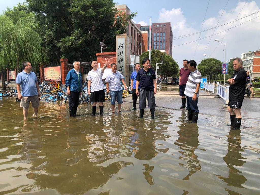 学校各项防汛救灾工作仍在紧张有序的进行。7月25日上午,校领导周志远、宋亚伟、冯启高、曹国杰、贺杰、王霞、陈合义一行,带领相关部门负责同志深入一线,实地调研指导防汛救灾工作。校领导一行先后到学校东大门、图书馆、行政楼、小麦中心、西大门、学生宿舍、餐厅等地进行了勘查。