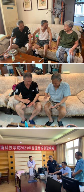 新乡持续强降雨,学校受灾严重。7月25日下午,校领导周志远、宋亚伟、冯启高、曹国杰、陈合义分别率队深入老同志家中,以及后勤服务中心、保卫处、学生处、招生就业处、校医院等职能部门,进行走访慰问。