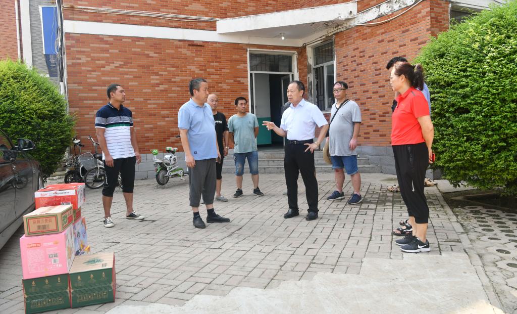 7月27日上午,校党委副书记、工会主席苗双虎带领校工会工作人员,看望暑期坚持在岗工作和奋战在抗汛救灾一线的教职工,并送去了慰问品。