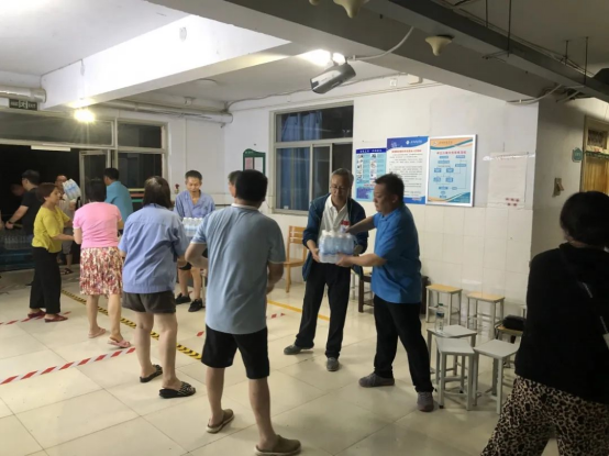 连夜调集食材、物资,加班加点进行烹饪,保证老乡们餐饮供给。