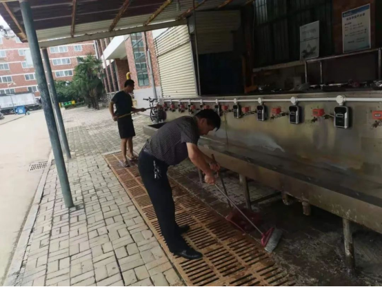 打扫西区、东区茶炉房及洗浴中心卫生,试开炉,作好烧开水、热水洗浴准备。