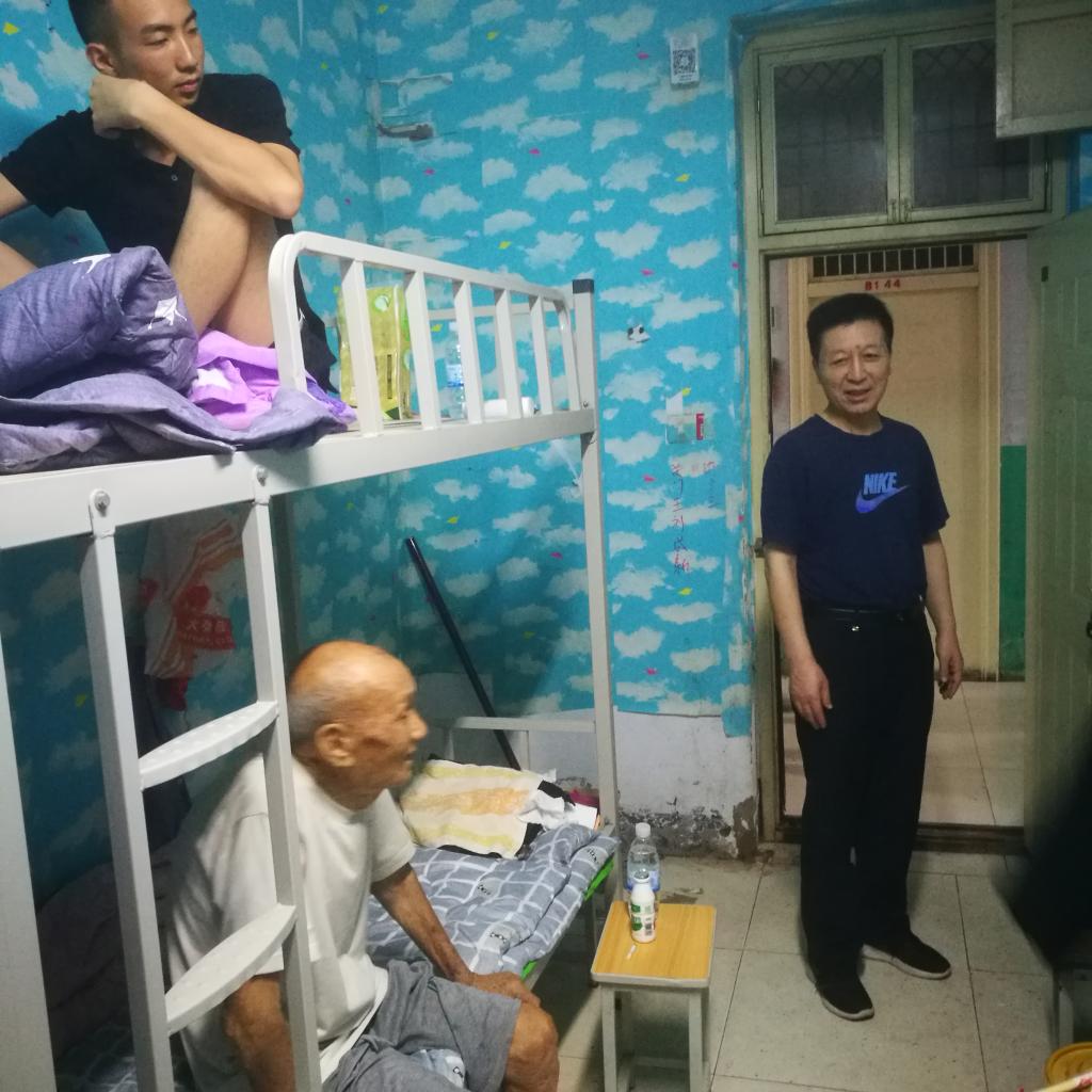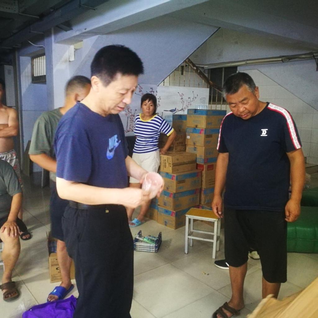 7月29日晚,校党委书记周志远深入8号宿舍楼,看望慰问安置在我校的卫辉受灾群众,并为他们送去了日常生活用品。