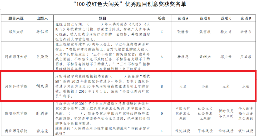我校选送的,艺术学院教师徐小玉的微党课《歌声中的党史》获“100年党史100问”微党课活动一等奖;原创试题获“100校红色大闯关”优秀题目创意奖;作品《光荣的勋章》获“100件宝物说百年”活动一等奖;学校入选”100所红色闯关原创试题推荐学校“名单。