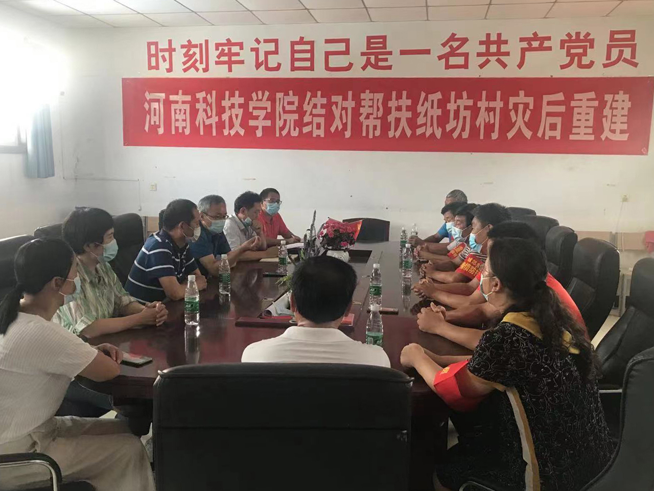 宋亚伟一行与纸坊村“两委”成员和驻村帮扶工作组成员进行了深入座谈,认真听取了纸坊村灾后重建情况的详细介绍,向纸坊村“两委”干部和广大群众表示诚挚的慰问,对纸坊村和河南科技学院携手并肩、紧密协作重建家园表示充分肯定。他指出,河南科技学院和纸坊村都遭受了“7.20”特大暴雨并受到严重财产损失,全校师生和纸坊村群众感同身受、守望相助,永远都是一家人。