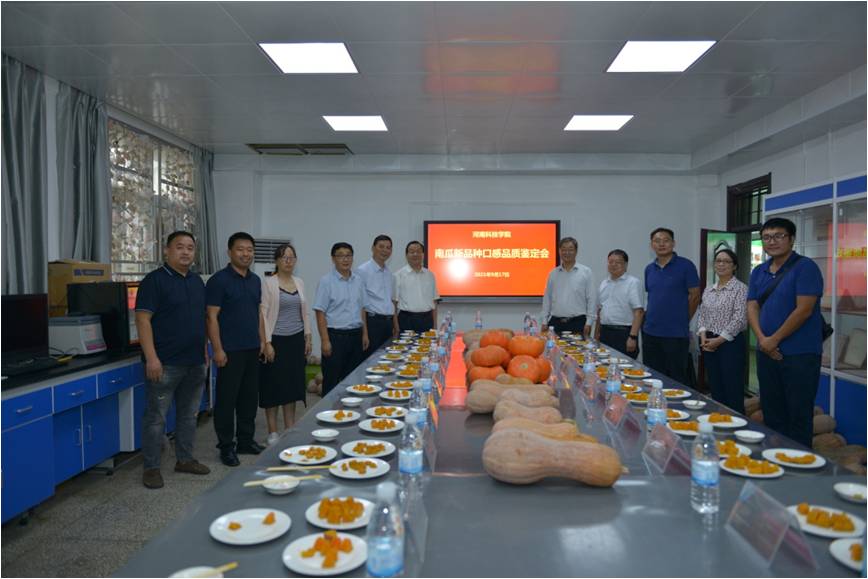 9月17日下午,我校在园艺园林学院实验室举办南瓜新品种专家测产与口感品质鉴定会,河南农业大学、河南省农业科学院、河南农业职业学院等单位的领导和专家出席了会议。会议由园艺园林学院院长周俊国主持。