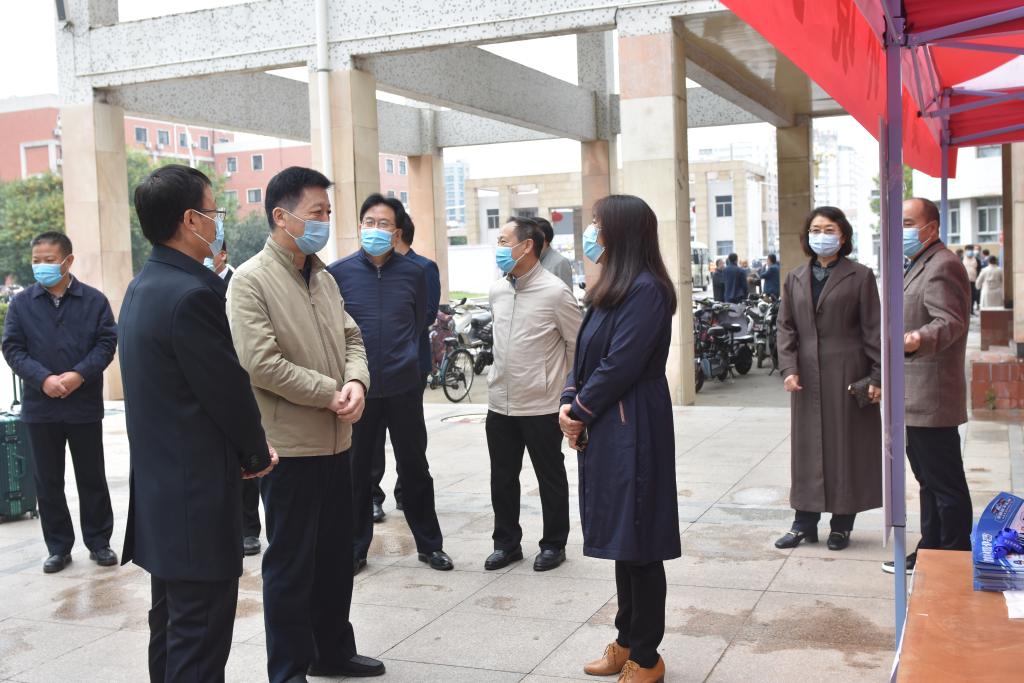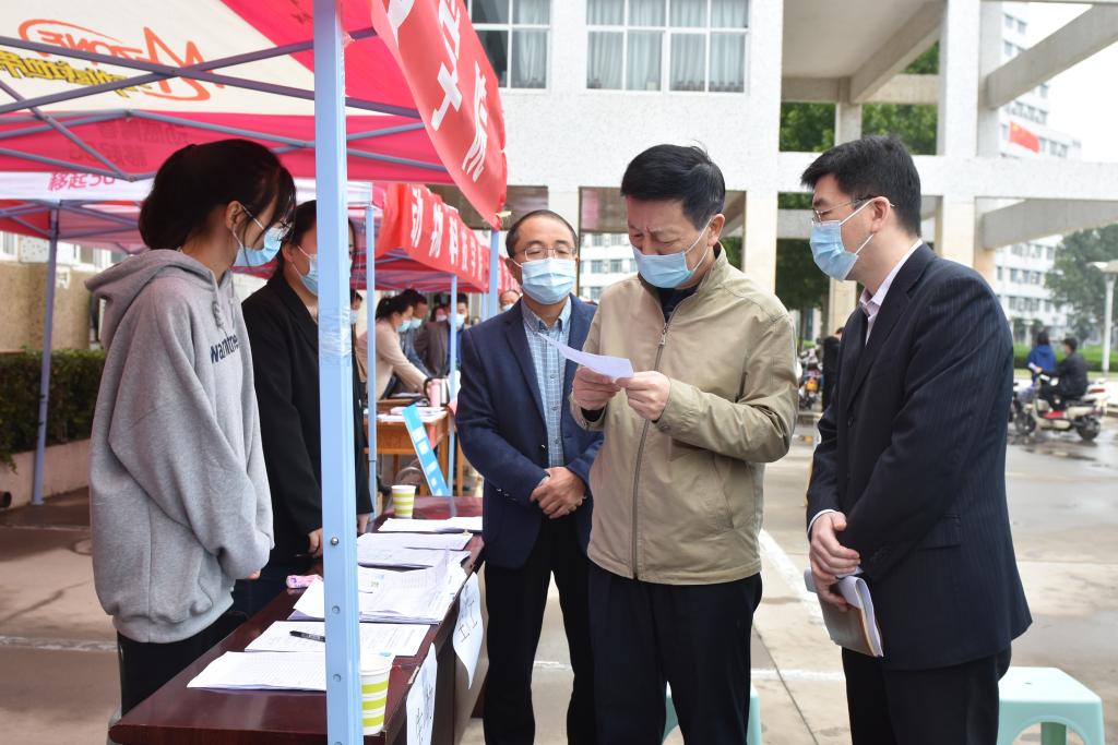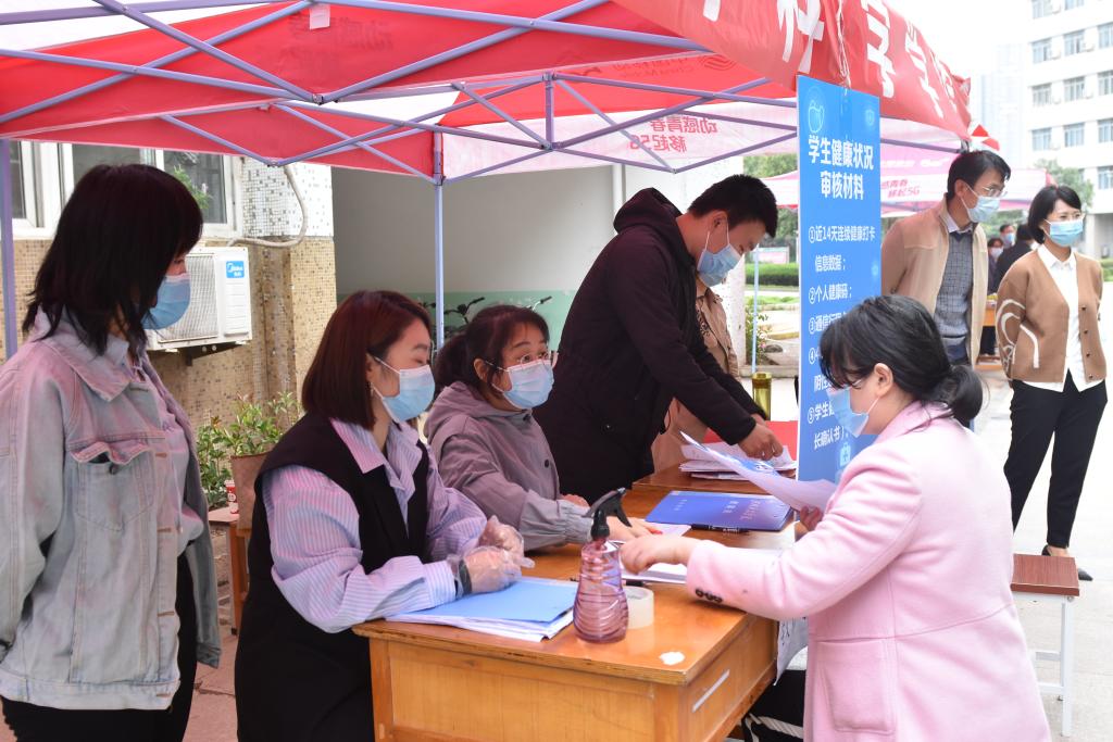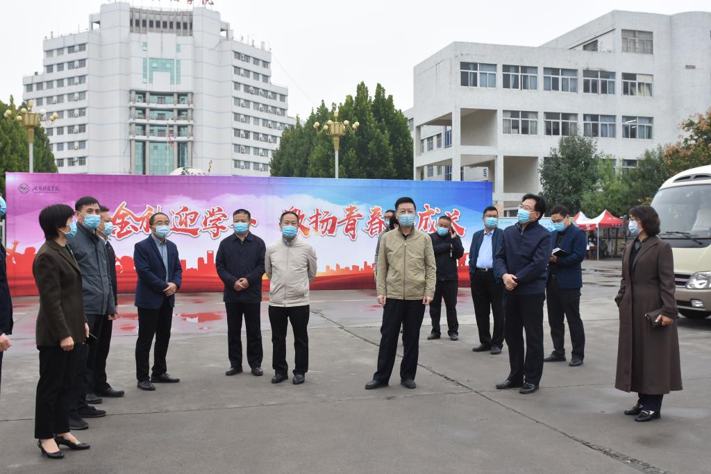 10月8日上午,校党委书记周志远,校党委副书记、工会主席苗双虎,副校长冯启高、王霞、陈合义,在党委办公室、校长办公室、校团委、教务处、学生处、保卫处、后勤服务中心、校医院等部门主要负责同志陪同下检查指导学生返校报到工作。