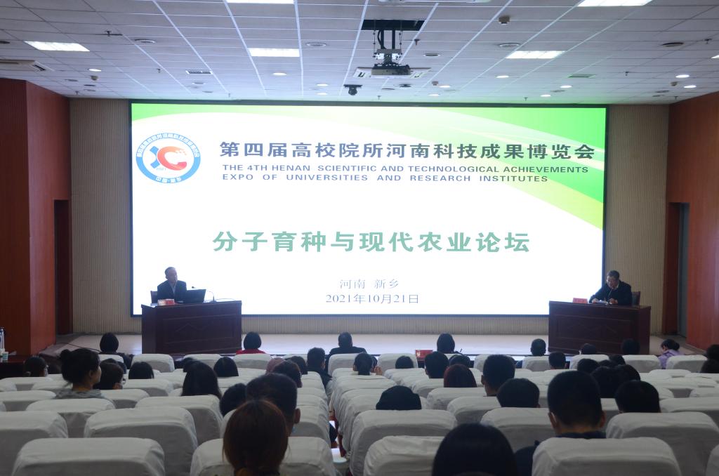 10月21日下午,由我校生命科技学院承办的第四届高校院所河南科技成果博览会——“分子育种与现代农业”分论坛在我校图书馆一楼学术报告厅举行。本次论坛的主题为“聚焦分子育种,助力乡村振兴”,邀请了长江学者、中国人民大学农业与农村发展学院院长仇焕广教授和北京科技大学化学与生物工程学院安学丽教授作学术报告,副校长贾积身、科技处负责人、师生代表共计100余人参加了论坛。