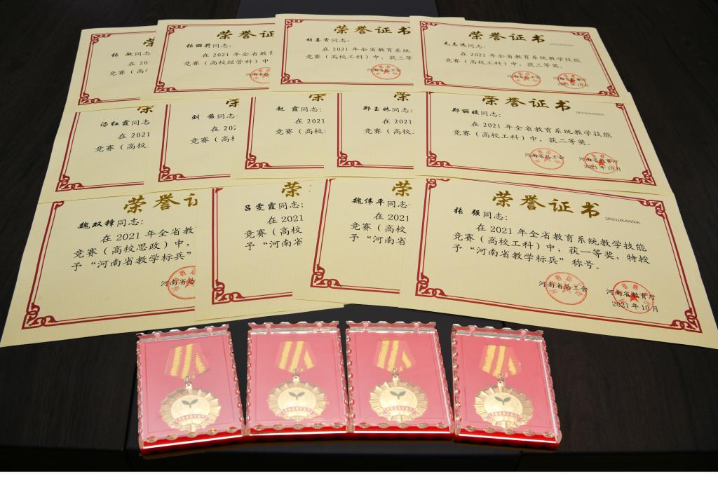 近日,从河南省总工会、河南省教育厅传来喜讯,在2021年河南省教育系统教学技能竞赛中,我校参赛教师喜获佳绩。在选送的13名选手中,4人荣获一等奖并被授予“河南省教学标兵”,5人荣获二等奖,4人荣获三等奖。数学科学学院教师魏伟平老师荣获全省高校理科组第三名的好成绩,马克思主义学院魏双锋、外国语学院吕雯霞分别进入高校思政组、高校文科组全省前20名。