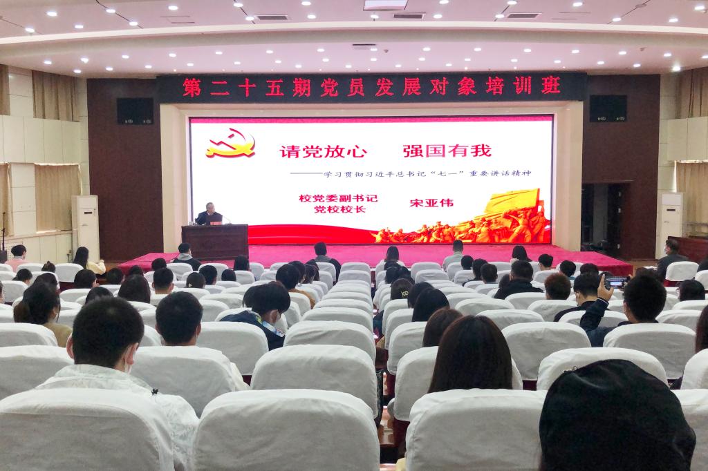 11月4日下午,校党委副书记、党校校长宋亚伟以《请党放心 强国有我——学习贯彻习近平总书记“七一”重要讲话精神》为题,给第二十五期党员发展对象培训学员上党课。各基层党委、党总支党员发展对象代表聆听了课程。
