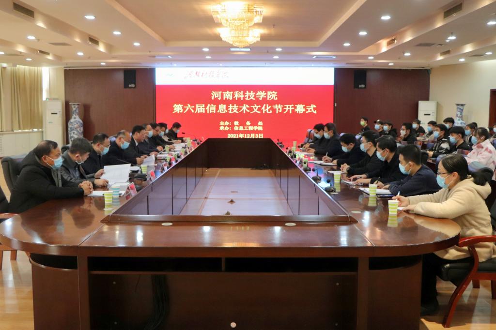 12月3日下午,由我校教务处主办,信息工程学院承办的第六届信息技术文化节在行政楼206会议室揭开帷幕。副校长何松林出席会议,学生处、研究生处、教务处、招生就业处、校团委、信息工程学院、河南云和数据信息技术有限公司相关单位工作人员参加会议。按照疫情防控要求,会议设置分会场。