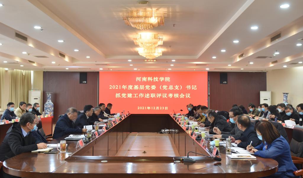 12月24日上午,我校在办公楼206会议室召开2021年度基层党委(党总支)书记抓党建工作述职评议考核会议。全体在校校领导出席会议,党群部门负责人,各基层党委(党总支)书记、副书记,教师党员代表等70余人参加会议。