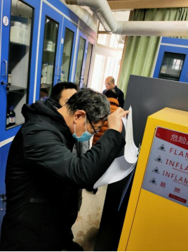 贾积身一行到实验室检查危化品管理
