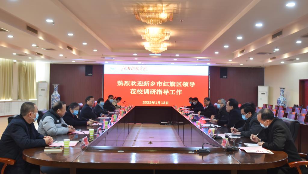 1月13日上午,新乡市红旗区人民政府区长刘怀斌等四大班子领导一行8人来校调研交流。我校在行政楼206会议室举行座谈会,校领导宋亚伟、冯启高、贾积身出席会议,党委办公室、校长办公室、科技处、保卫处等部门负责人参加会议。