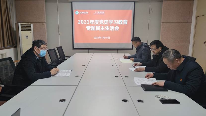 1月10日上午,人工智能学院党总支在电教综合楼803会议室召开2021年度党史学习教育专题民主生活会。学院党政领导班子成员参加会议,副校长贾积身全程参会。