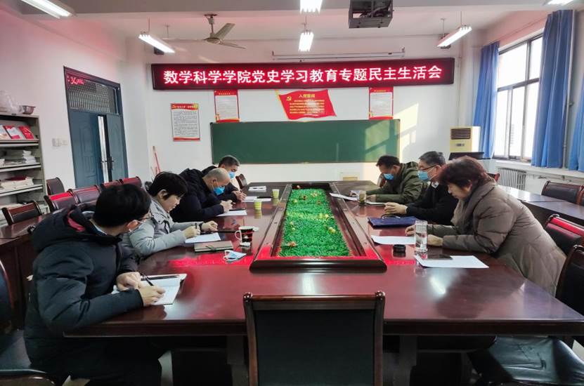 根据校党委的安排部署,1月19日下午,数学科学学院党史学习教育专题民主生活会在学院会议室召开。副校长贾积身到会指导,学院党政领导班子成员参加会议。