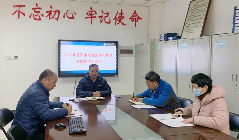 1月17日下午,财务处在行政楼106会议室召开党史学习教育专题民主生活会,副校长陈合义参加并指导会议。