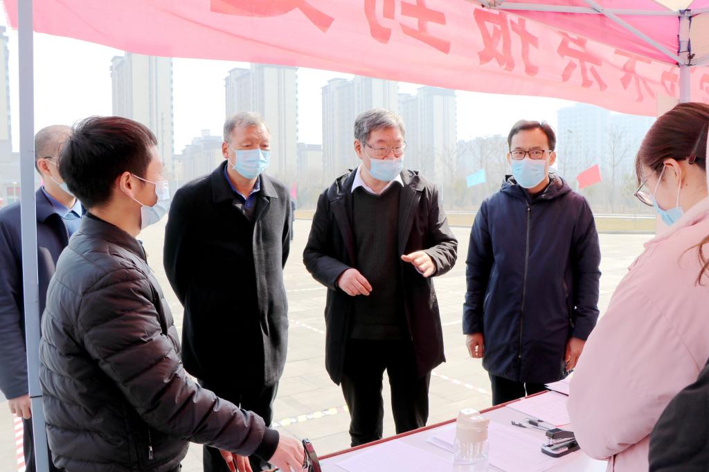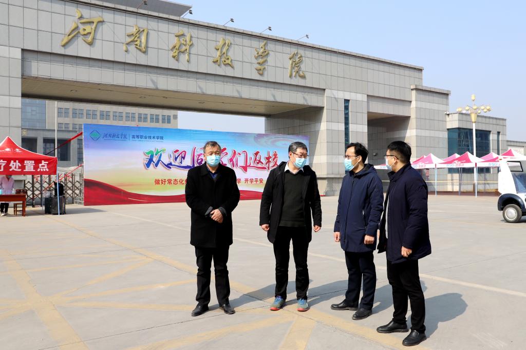 2月25日,阳光明媚、春意盎然,高等职业技术学院学生如期返校报到。上午,副校长贾积身在校长办公室有关人员陪同下来到辉县校区,检查指导学生返校报到及常态化疫情防控工作。