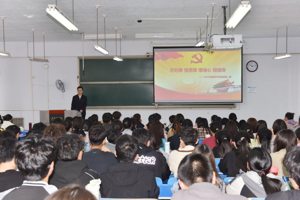3月11日上午,学校党委书记周志远在三号楼合三教室,为经济管理学院、生命科技学院190余名学生代表讲授开学思政第一课。