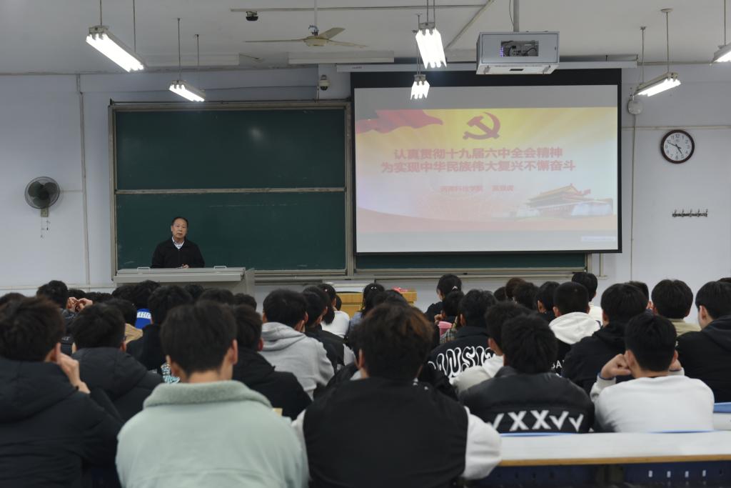 曹国杰以《珍惜学习时光 勇担时代使命》为主题,从“十九届六中全会的基本情况和时代意义、十九届六中全会的主要精神及重点内容、准确把握实践要求担当使命不负时代重托”三个方面展开阐述。他用鲜活的案例带领同学们回顾了党百年来波澜壮阔的奋斗历程,深入解读党的十九届六中全会精神。
