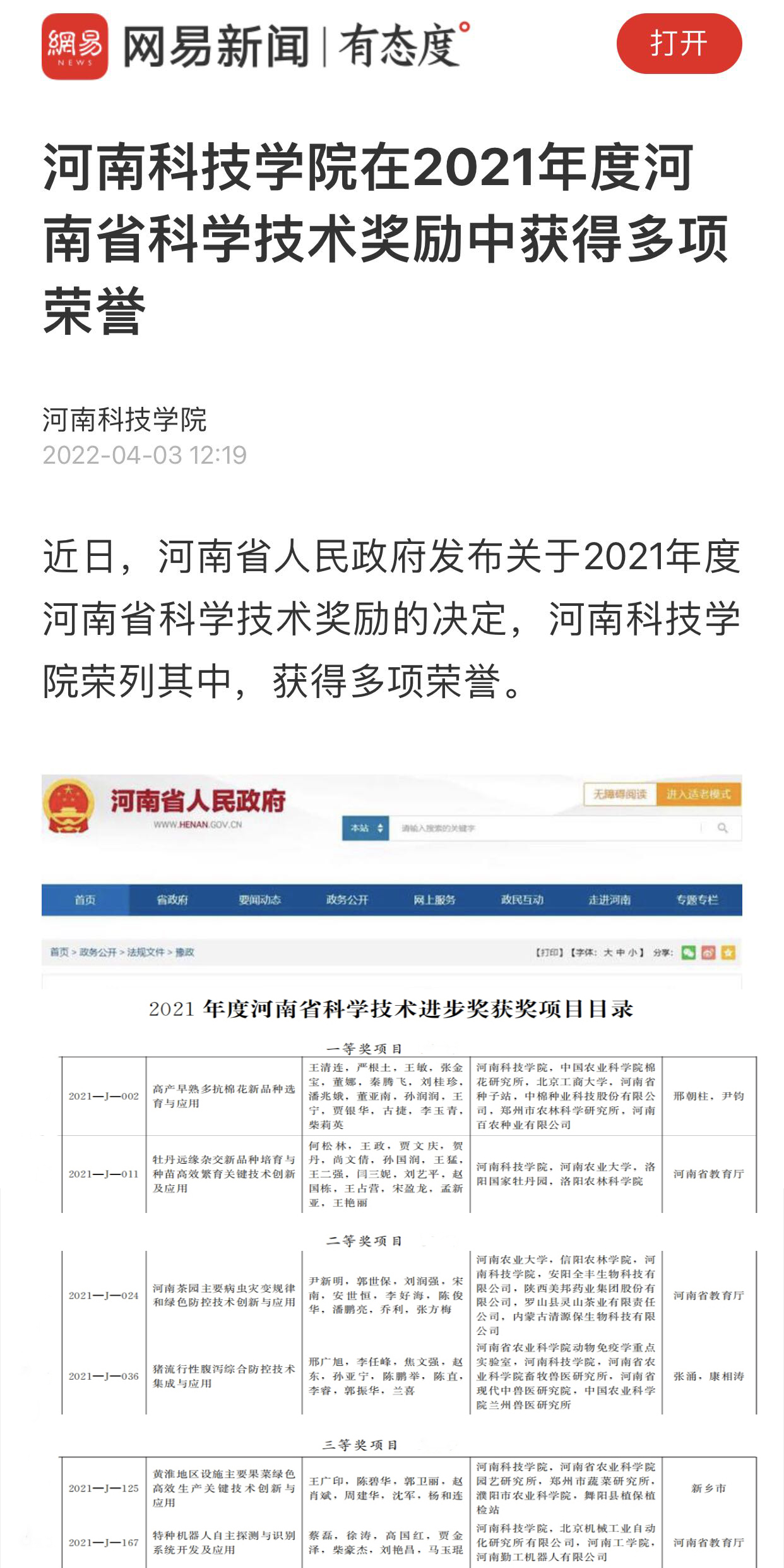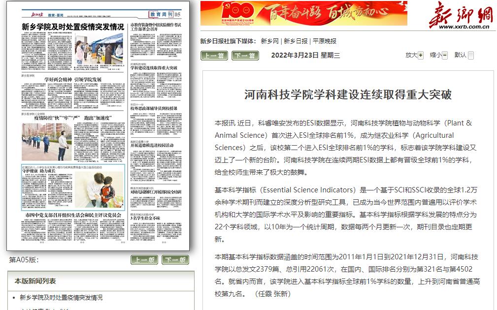 我校学科建设连续取得突破,《光明日报》、“河南省人民政府网站”、《河南日报》、“学习强国”、“河南教育宣传网”、“网易”、《新乡日报》等先后对学校进行了报道。