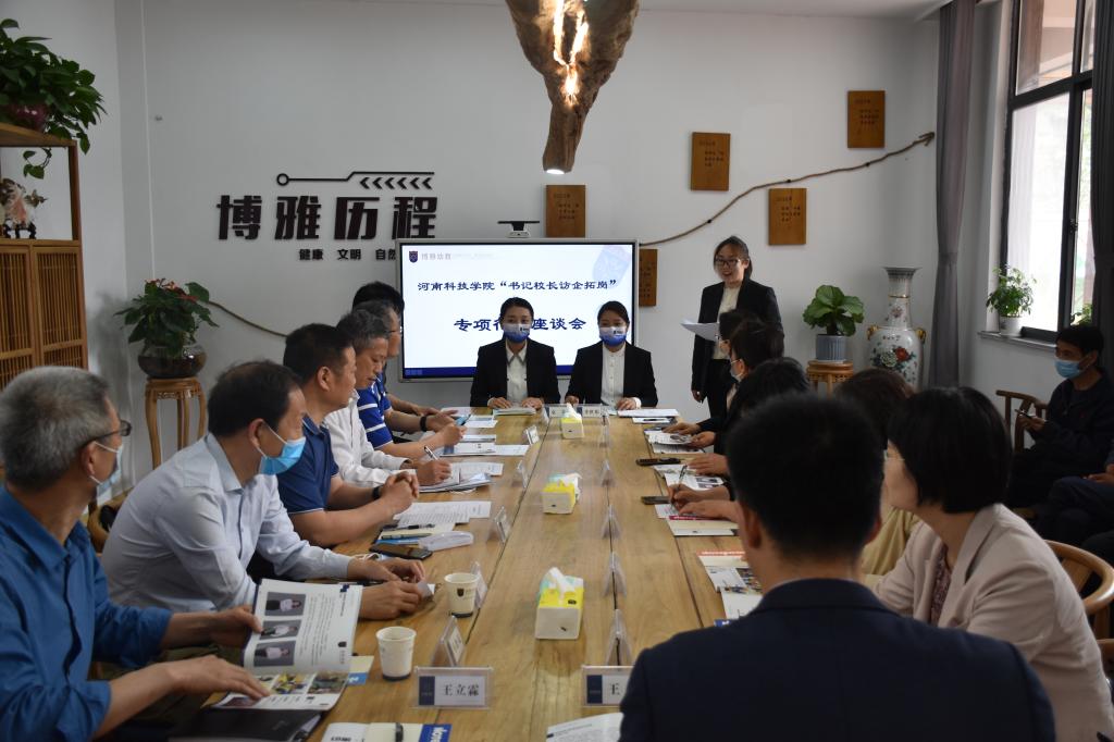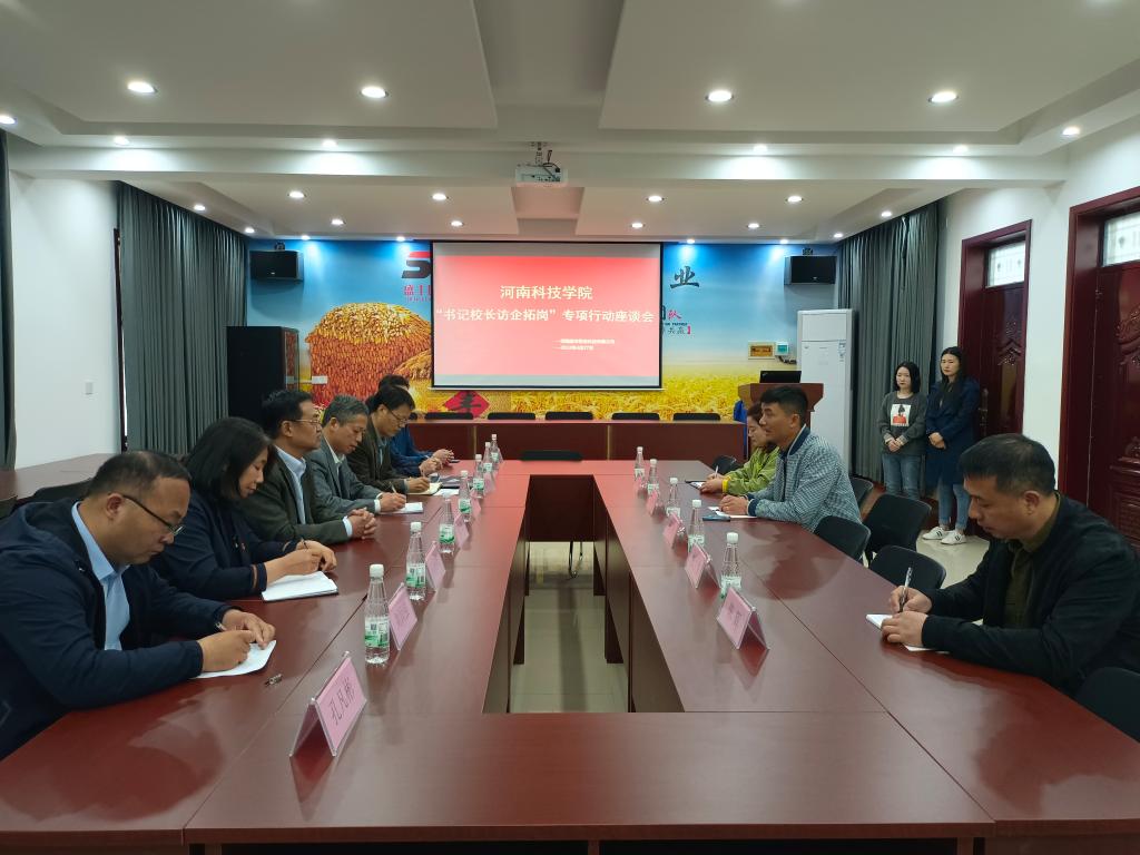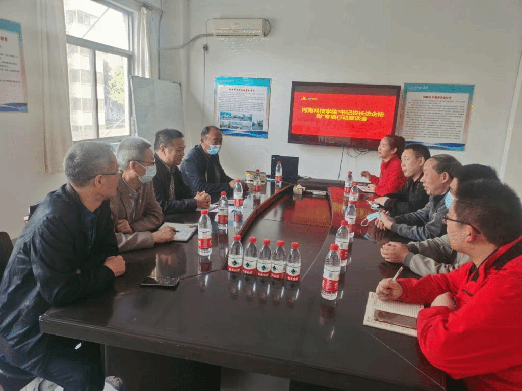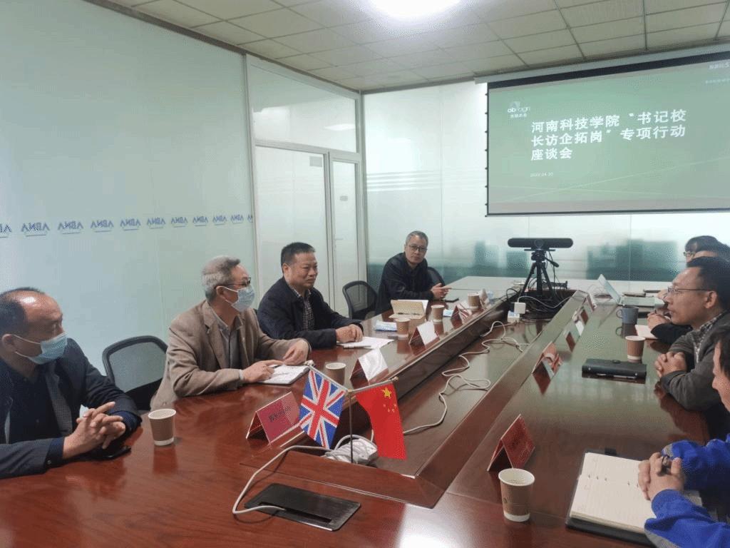 4月28日上午,河南乐工智能科技有限公司、河南耀洁环保科技有限公司相关负责人应邀来校走访,围绕学生就业、实习和员工培训等相关事宜展开座谈交流,校党委副书记苗双虎参加座谈。