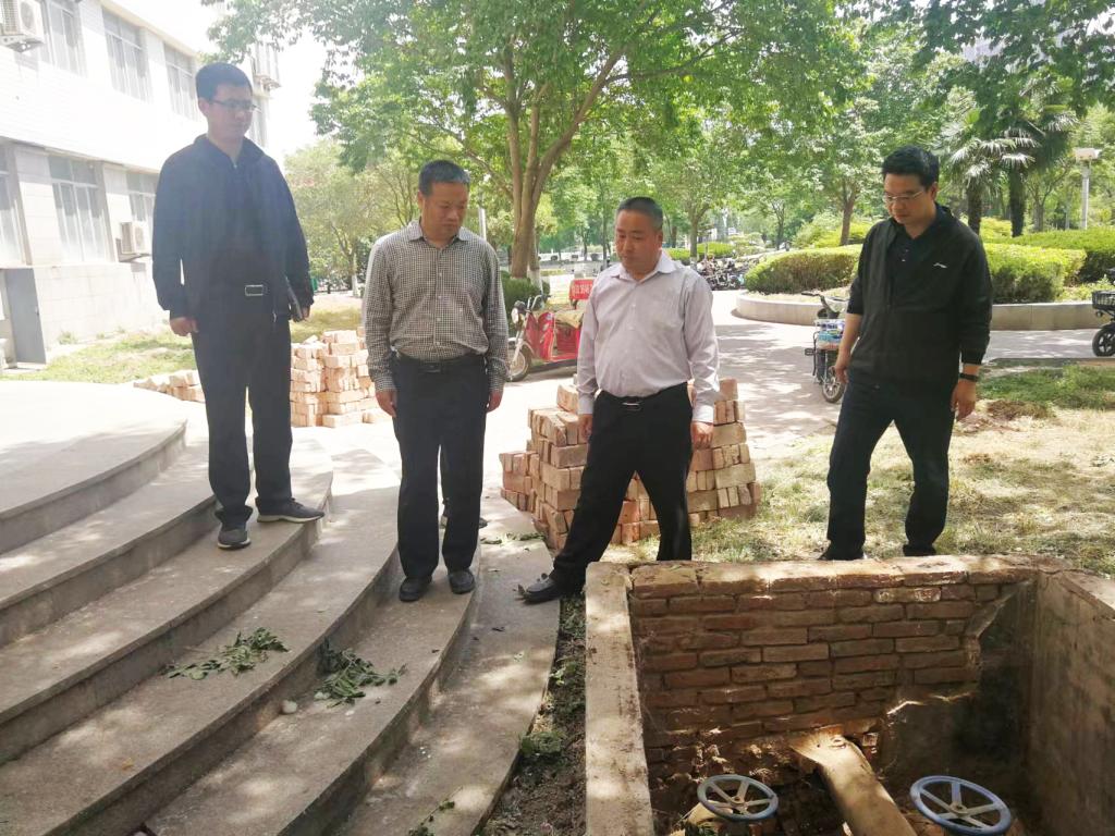 5月18日上午,副校长陈合义在后勤服务中心负责人及相关人员的陪同下,检查指导学校灾后恢复重建工作。