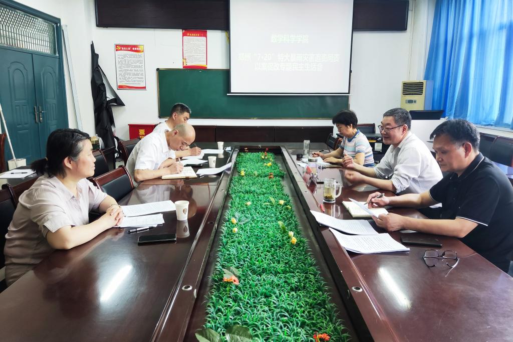5月24日上午,数学科学学院在8303会议室召开郑州“7·20”特大暴雨灾害追责问责以案促改专题民主生活会。副校长贾积身出席会议,学院党政领导班子成员参加会议。会议由数学科学学院负责人主持。