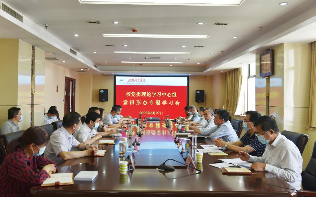 5月27日上午,校党委理论学习中心组在行政楼901会议室召开意识形态专题学习会。全体中心组成员到场参加,党委学工部、校团委部门负责人和经济与管理学院、机电学院、食品学院党委书记列席旁听。会议由校党委书记宋亚伟主持。