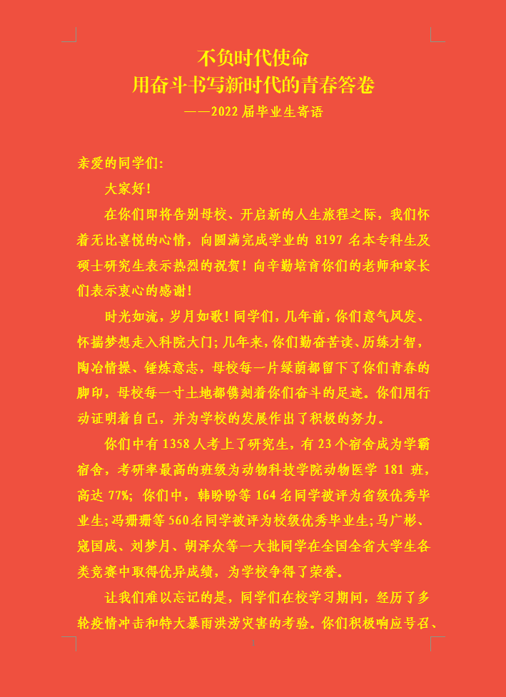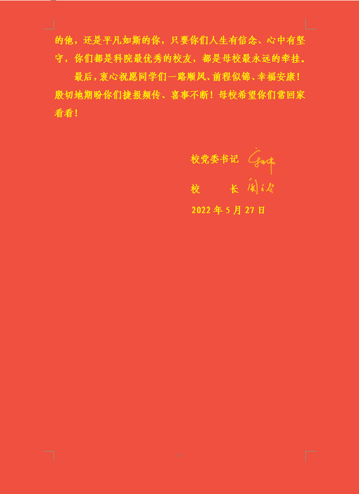 【党委书记宋亚伟 校长阚云超寄语2022届毕业生】