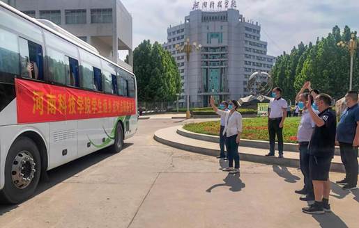 离校前,学校对全体毕业生进行核酸检测,帮助学生顺利返乡。学校安排6辆大客车,采用多班次“点对点”运送方式,将2100余名在校毕业生护送至高铁站、火车站及汽车总站,极大地降低了学生中途转运风险。校领导深入送站现场指导工作,与毕业生亲切交谈,现场充满温馨。学校设置学生返乡服务台,向学生发放口罩、消毒湿巾等防疫物资,为学生返乡保驾护航。对于暂时无法返校、经济困难的毕业生,学校以“爱心邮寄”的方式将行李和毕业资料等寄到学生手中。