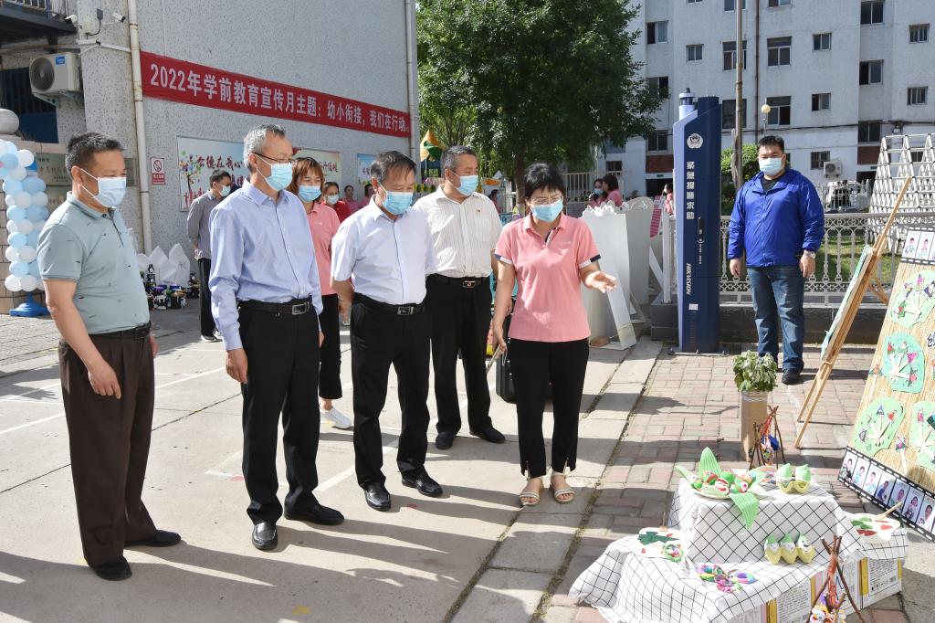 校领导按照学校疫情防控要求,测温、扫场所码进入幼儿园和子弟小学,和老师们亲切交谈,详细了解大家的工作情况,仔细询问孩子们的学习、生活状况;实地查看孩子们的学习生活条件,观看了小朋友的“六•一”画展和非洲鼓才艺表演等。幼儿园和子弟小学负责人代表全体老师和小朋友对校领导的到来表示欢迎和感谢。