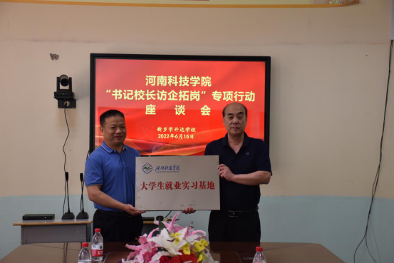 会后,双方举行了“河南科技学院大学生就业实习基地”揭牌仪式。