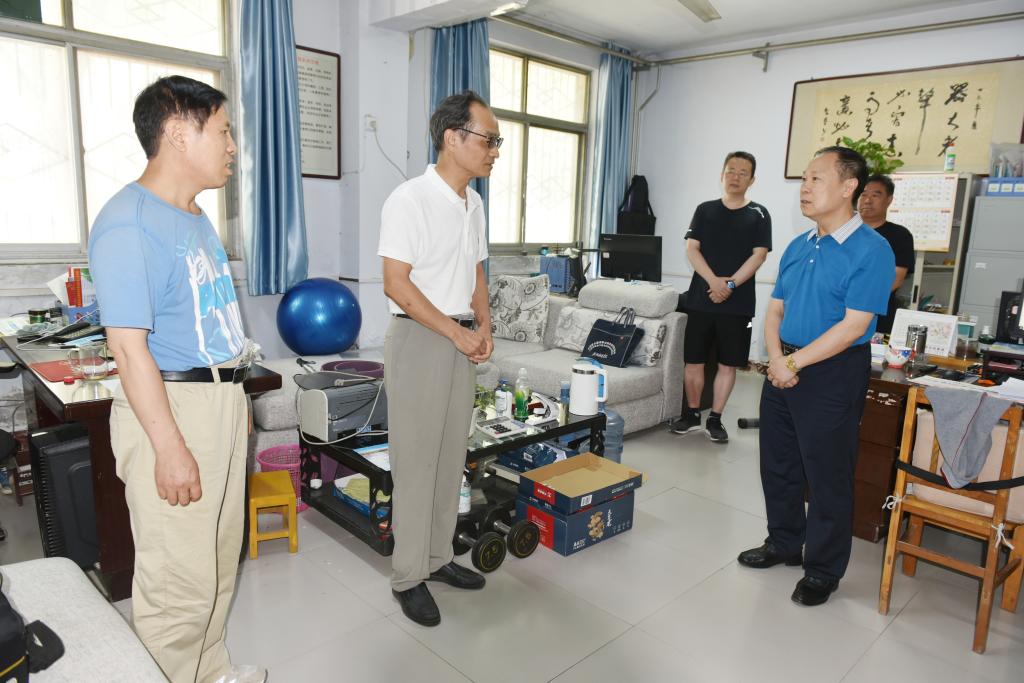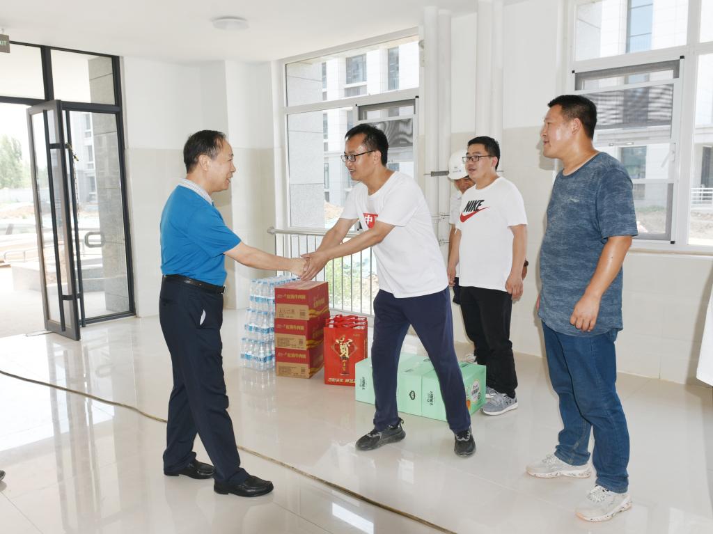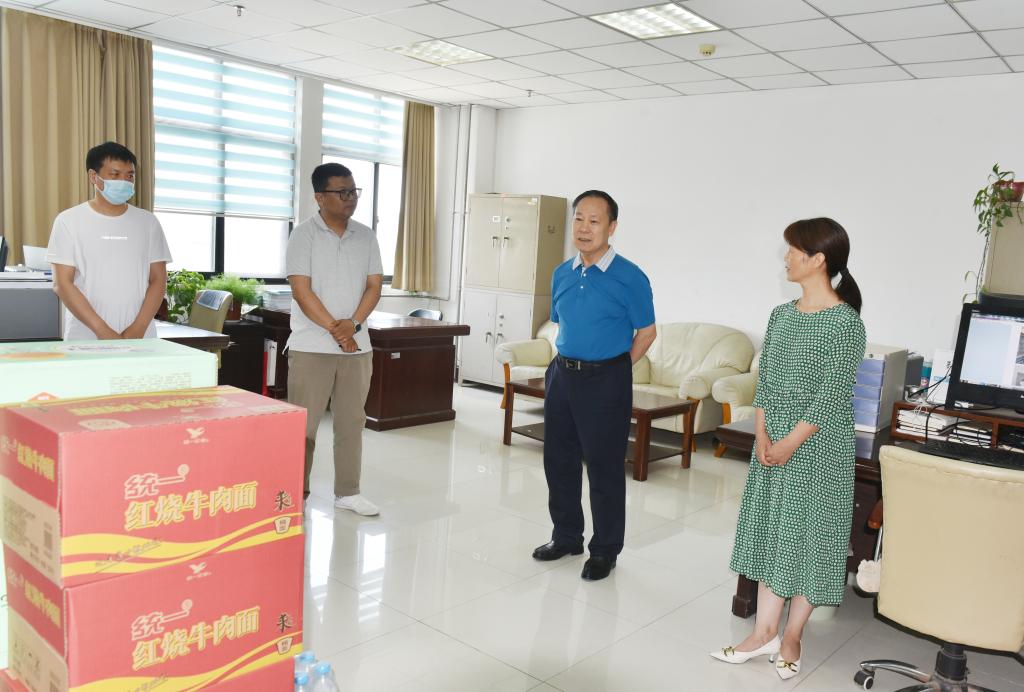 6月22日上午,校党委副书记、工会主席苗双虎一行到资产处、基建处、继续教育学院、保卫处、校医院、后勤服务中心等单位,看望慰问暑假期间坚守工作岗位的一线职工,并为大家送去了慰问品。