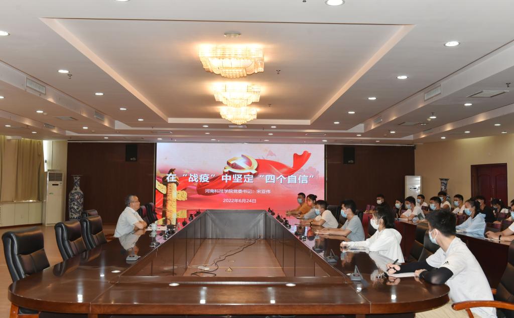 6月24日下午,校党委书记宋亚伟以《在战“疫”中坚定“四个自信”》为题,在行政楼206会议室为40余名暑假留校研究生讲授了一堂生动的疫情防控专题思政课。