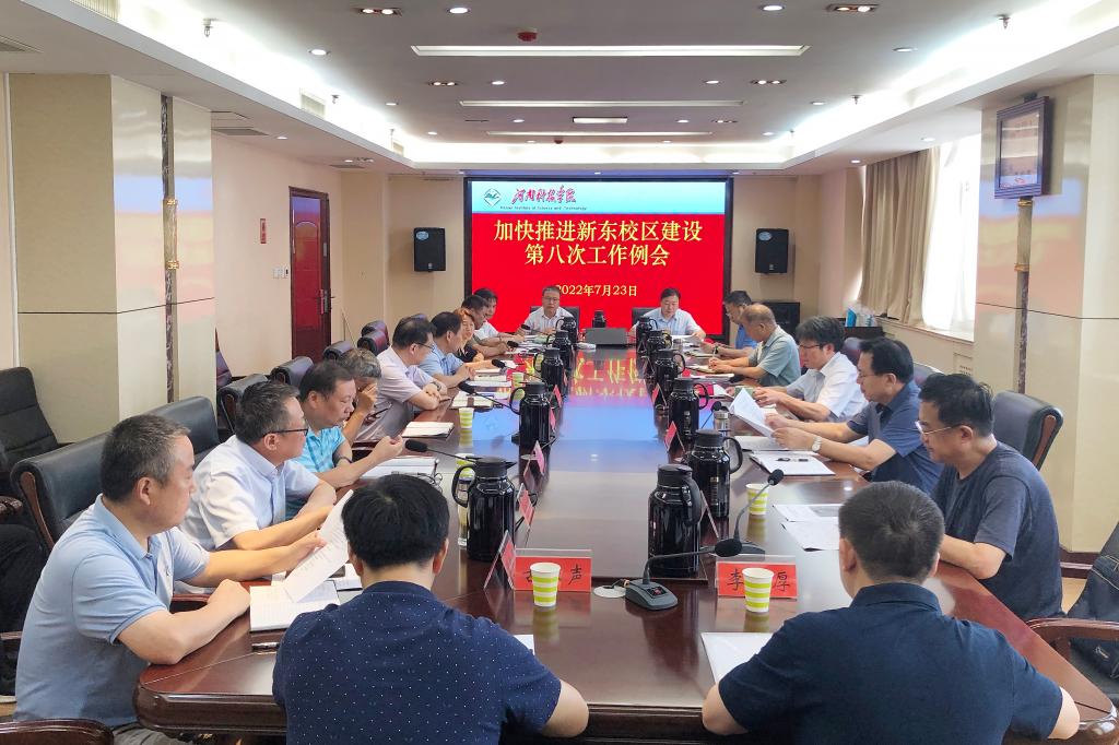 7月23日上午,我校在办公楼901会议室召开加快推进新东校区建设第八次工作例会。校领导阚云超、冯启高、曹国杰、贺杰、陈合义出席会议,校长办公室、党委宣传部、纪委(监察专员办公室)综合室、教务处、财务处、资产处、审计处、基建处、保卫处、网络与信息化管理中心、后勤服务中心、信息工程学院、人工智能学院等单位负责人参加会议。