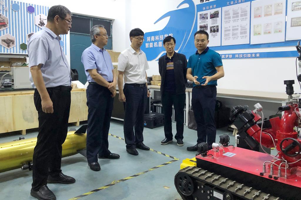 宋克兴到智能机器人中试平台详细了解了我校具备完全自主知识产权的国内首台(套)咽拭子核酸检测自助设备整体研发过程,听取了我校智能机器人研发团队负责人对依托国家重大、重点项目研制的20余款机器人的设计理念和功能介绍,现场查看了原理样机,认真询问了团队未来科研成果转化计划。宋克兴对我校依托新工科建设大背景,在新一代信息技术、高端智能装备制造等新兴领域取得的系列成果给予了充分肯定,希望我校加强与河南省科技创新发展规划的对接与融合,孕育并创造出更多具有标志性的科技成果。