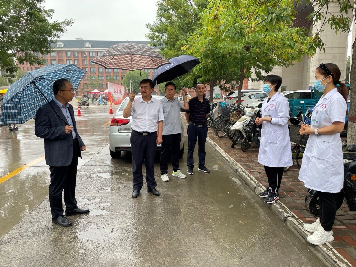 贺杰一行先后来到外国语学院、资源与环境学院、校医院、校西南门、学生宿舍、校东门,对学生报到、教学安排、师生管理、宿舍运行监管、校门出入管控等情况进行了深入细致的了解,认真听取了有关情况汇报。