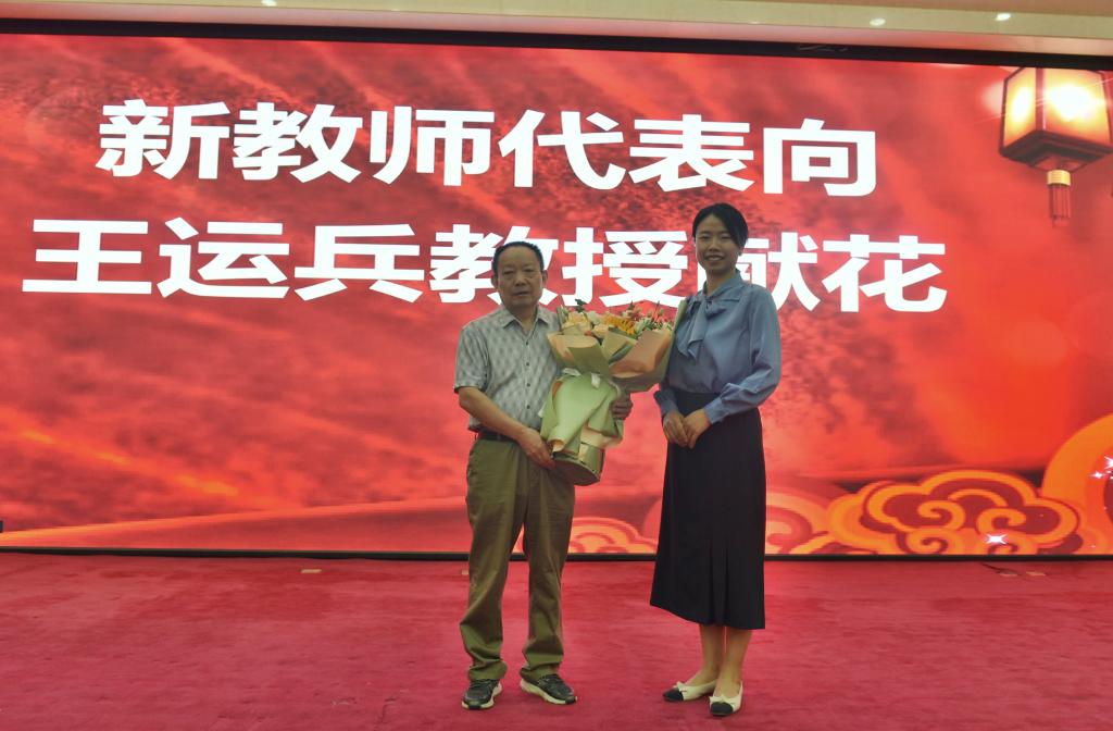 随后,我校退休教师、全国优秀教师王运兵教授为新进教师讲授师德第一课。王运兵结合自己多年从事教学科研工作经验,鼓励新进教师尽快转变角色,继承发扬老一辈科院人“铁屁股、冷板凳”精神,洗尽铅华,躬身前行,做党和人民满意的高校教师。