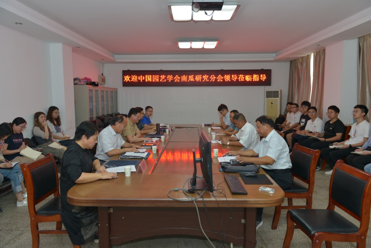 孙小武介绍了中国园艺学会南瓜研究分会有关情况,肯定了我校在南瓜种质资源收集、创新与育种方面取得的成绩,对南瓜团队提出的“南瓜北移种植”和“南瓜上山下滩、不与粮田争地”理念表示赞赏。随后与会人员就目前南瓜研究中出现的问题和育种方向进行了深入研讨。