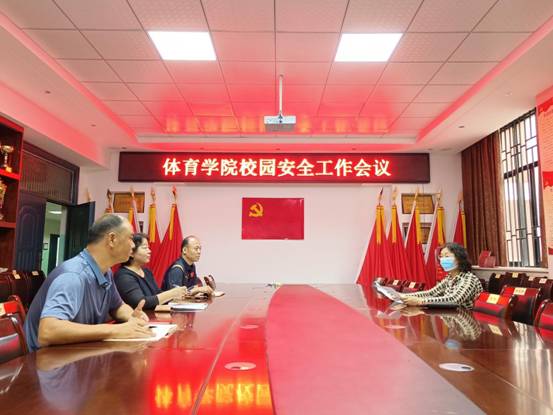 9月30日下午,副校长王霞深入体育学院实地检查指导校园安全建设工作。体育学院党政领导班子参加会议。