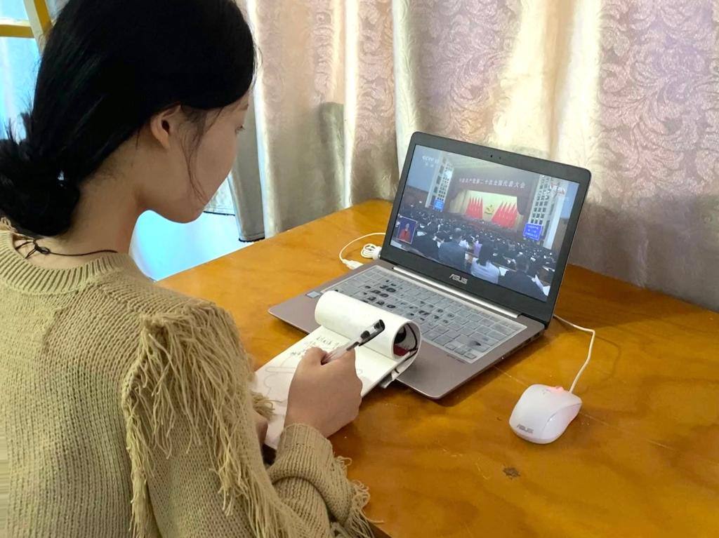 马克思主义学院办公室主任黄瑞新:10月16日上午10时,这是举世瞩目的一刻,也是彪炳史册的一刻,中国共产党第二十次全国代表大会在北京隆重开幕。作为一名中国共产党党员,一名工作在高校马克思主义学院的思想政治理论课教师,我有幸与学院师生共同见证了这一伟大的高光时刻,感到无比的激动与自豪。