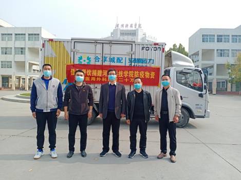 10月31日,新乡佳朋、珠海鑫茂、河南宝贤斋、洛阳久久、新乡锦洲玉等餐饮公司和第一学生餐厅、第三学生餐厅一楼商户,分两批次向学校捐赠医用外科口罩75万只。后勤服务中心相关人员负责接收捐赠物资,并向捐赠企业、商户致谢。