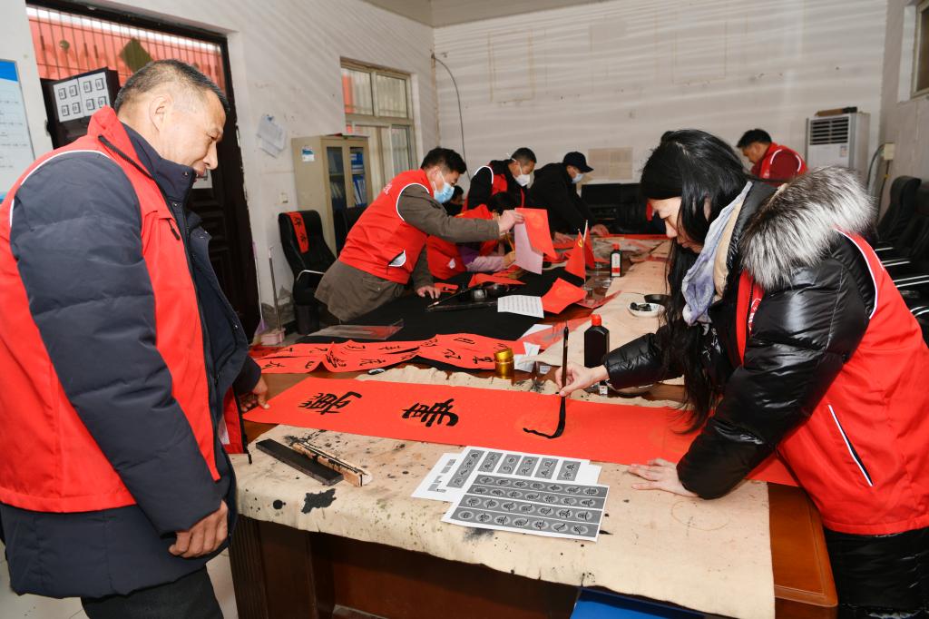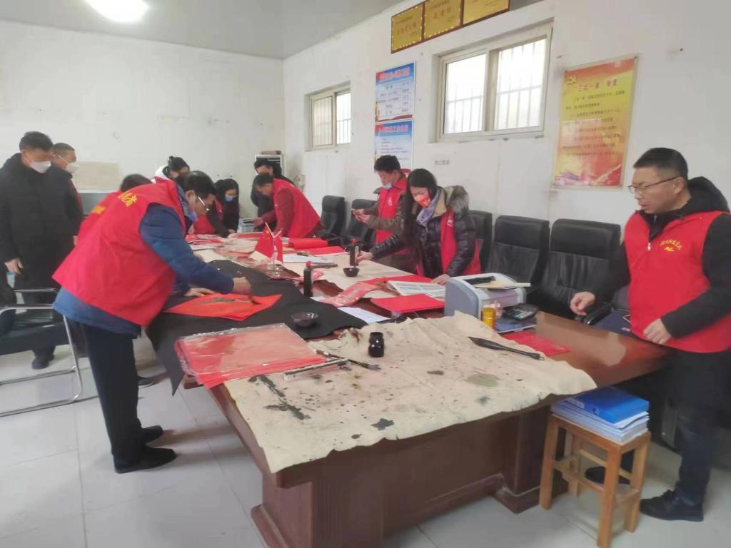 前期,为了能让更多闫庄的群众领到春联,学校组织了以“助力乡村振兴”为主题义写春联笔会,20多名校书画协会会员挥毫泼墨,提前为广大群众写好了200多副春联。“爱心暖万家、义务献春联”活动已连续举办了20年,校内外师生和群众对该项活动给予了高度评价,并被多家媒体多次采访报道。