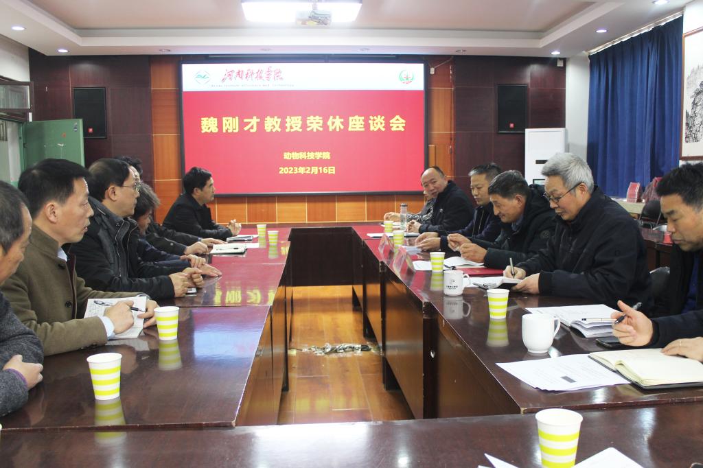 2月16日下午,动物科技学院在E302会议室举行魏刚才教授荣休座谈会。副校长陈合义出席座谈会,学院党政班子全体成员动物生产教研室全体教师、各专业负责人、青年教师代表等参加座谈会。
