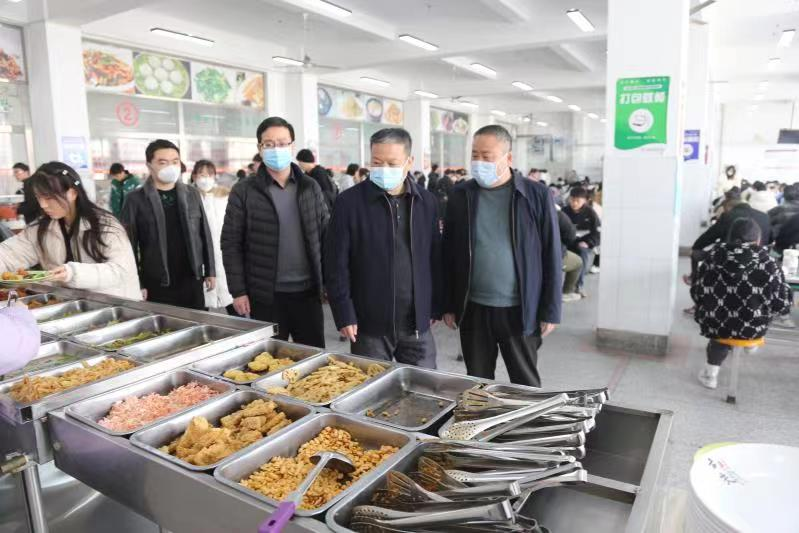陈合义一行先后来到第一学生餐厅、第二学生餐厅实地察看餐厅高峰期运营、卫生保洁、食品留样、疫情防控等方面情况,详细了解春季学期学生餐厅食品安全管理工作部署。