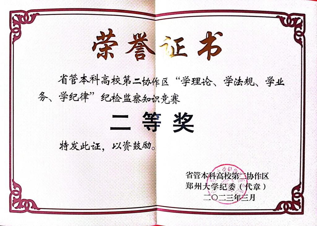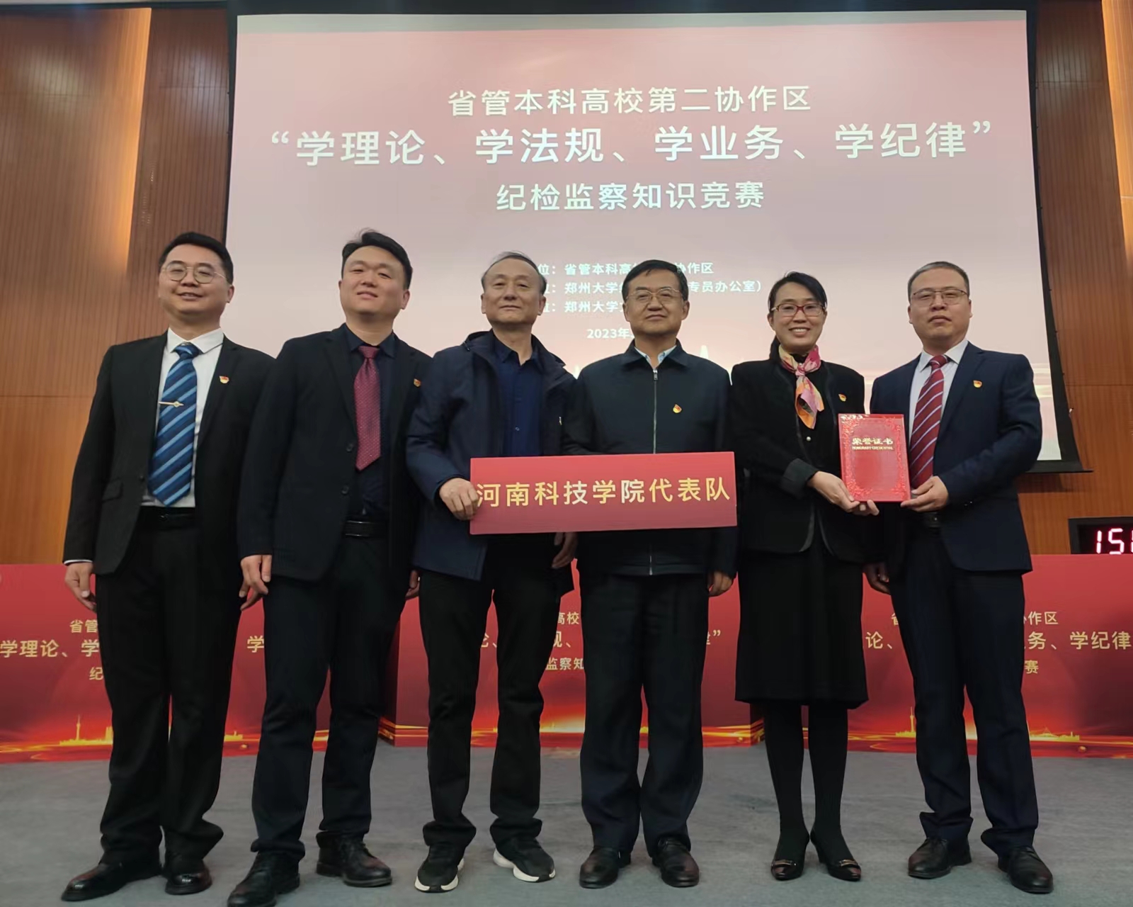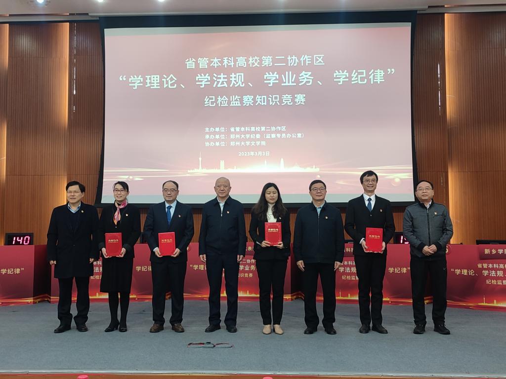 为深入学习党的二十大精神,全面贯彻落实二十届中央纪委二次全会和十一届省纪委三次全会部署,巩固深化自身建设提升行动效果,按照省纪委监委第七监督检查室部署,3月3日上午,省管本科高校第二协作区“学理论、学法规、学业务、学纪律”纪检监察知识竞赛在郑州大学举行,校纪委书记、监察专员贺杰带队参加了此次竞赛。