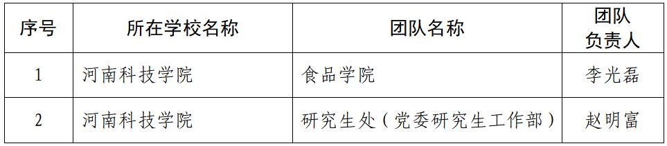 4月10日,河南省教育厅、河南省学位委员会下发《关于表彰2022年河南省研究生教育先进团队和优秀个人的决定》(教研〔2023〕96号),我校2个研究生教育团队获得河南省研究生教育工作优秀团队,2个研究生导师团队获得河南省优秀研究生导师团队,2名教师获得河南省研究生教育管理工作优秀个人,3名教师获得河南省优秀研究生指导教师,6名研究生获得河南省研究生创新之星,具体名单见附件。